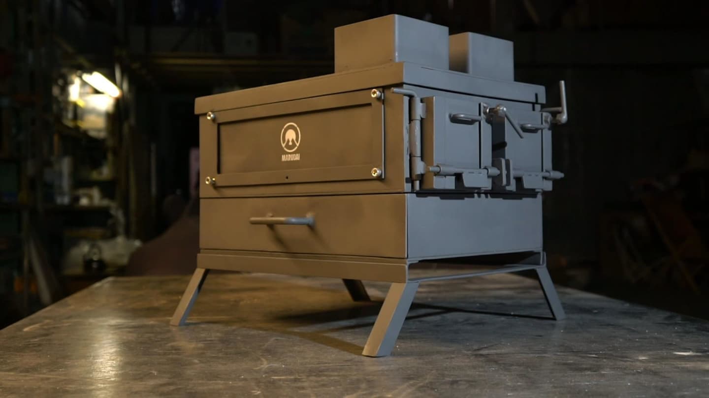 薪ストーブの下部にオーブンを設け、ピザ窯として使用可能。
